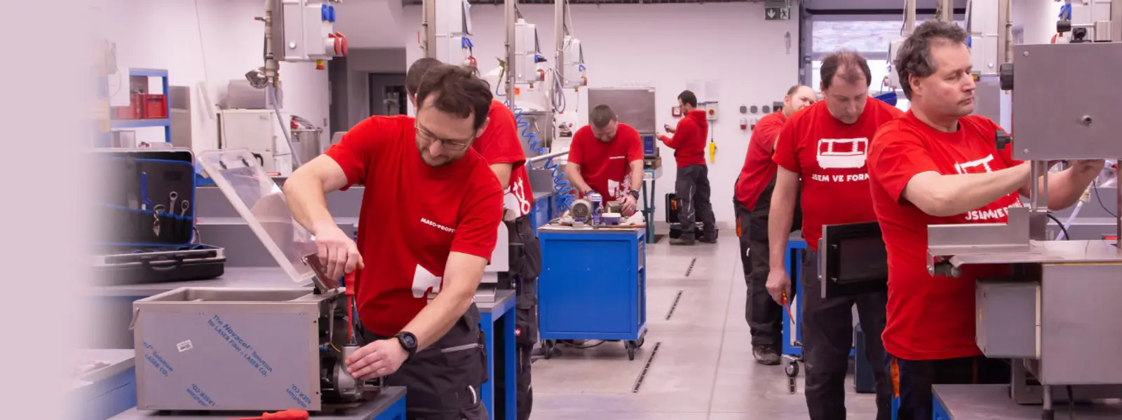 Disponujeme servisním a montážním týmem s dnes již 20-ti zkušenými profesionály, kteří mají k dispozici sklady náhradních dílů na každé naší pobočce.